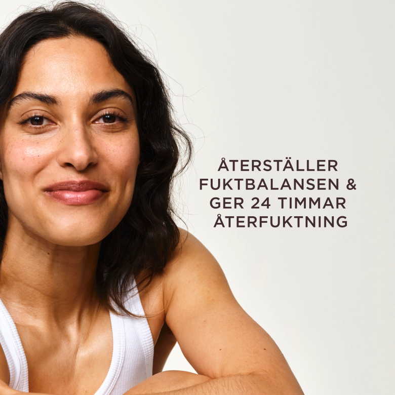 Ja, krämen återfuktar i upp till 24 timmar tack vare hyaluronsyra.